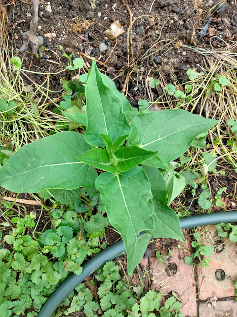 The four-o'clocks have decided to come up, and glad I am to see them.